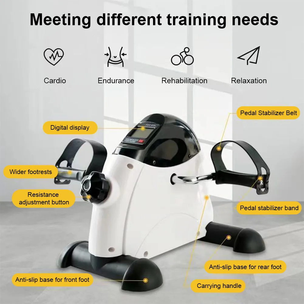 4.Adjustable Resistance: Featuring an adjustable resistance knob, this mini pedal bike allows you to customize the intensity of your workouts. Whether you're a beginner or an advanced user, you can progressively increase the difficulty to match your fitness level.