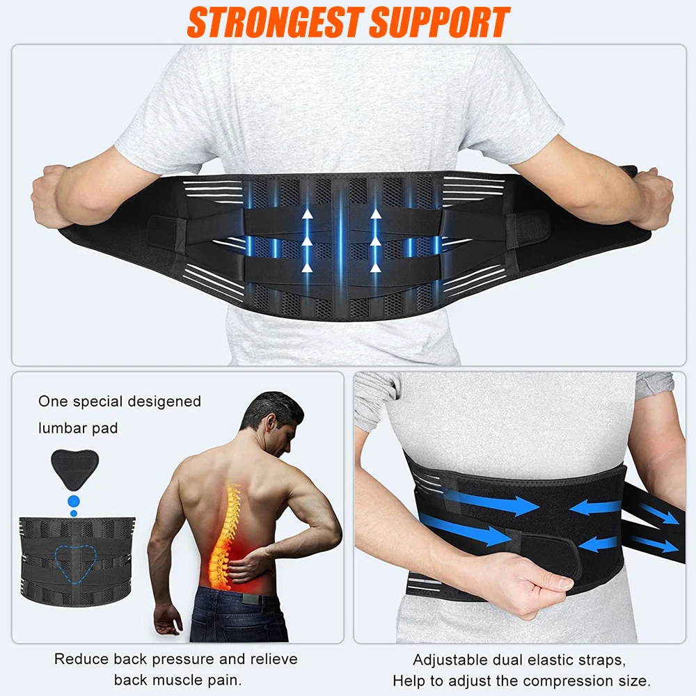 Features:【Relieve LOWER BACK PAIN 】The Back brace contains 4 Memory-aluminum stays that are quadruple harder than the commonly used PP strips,and 2 steel springs placed along the waist side, offer 360° stronger vertical support to lower back,prevent excessive rolling of your muscles and decrease the pressure on your discs.